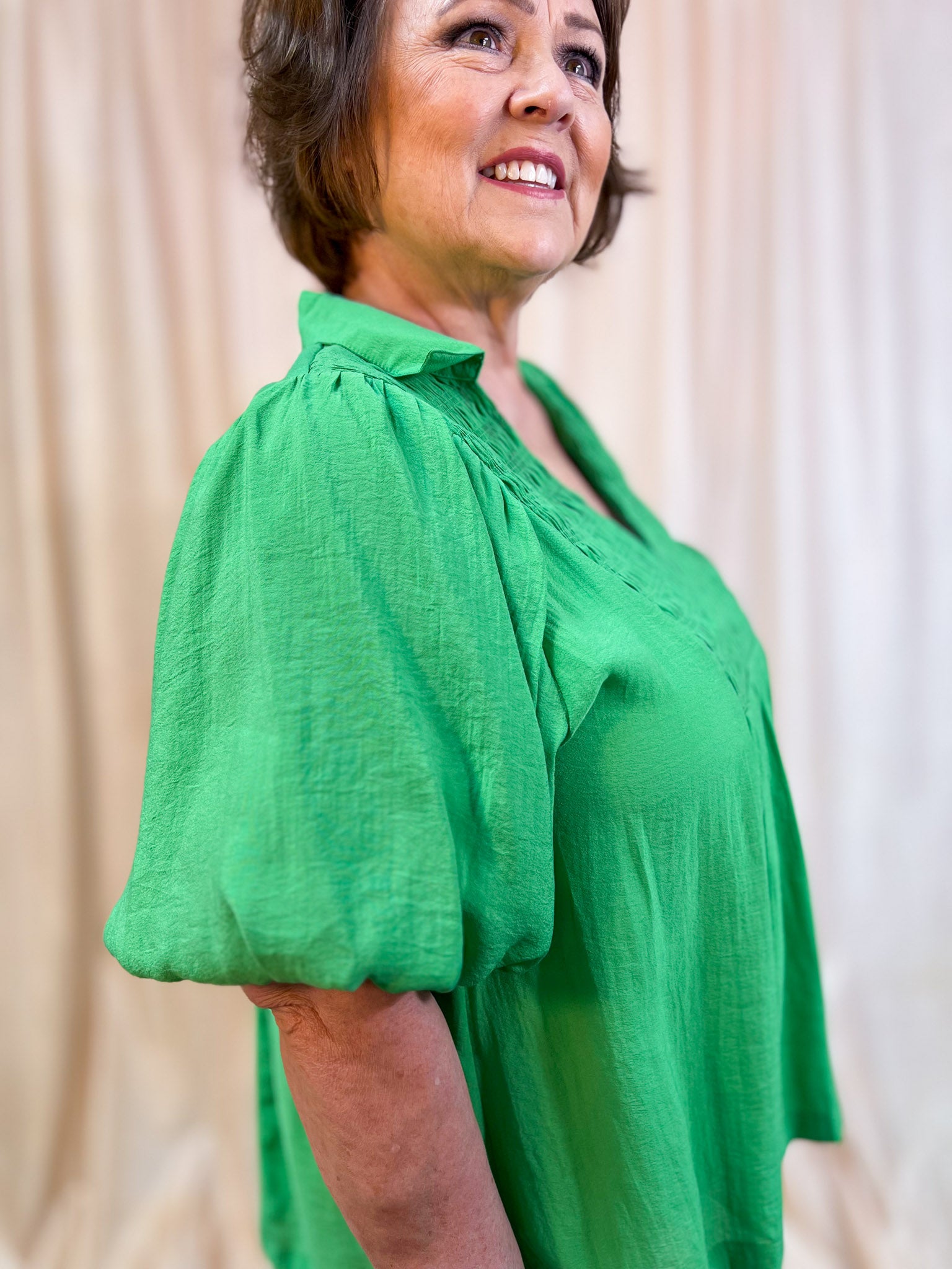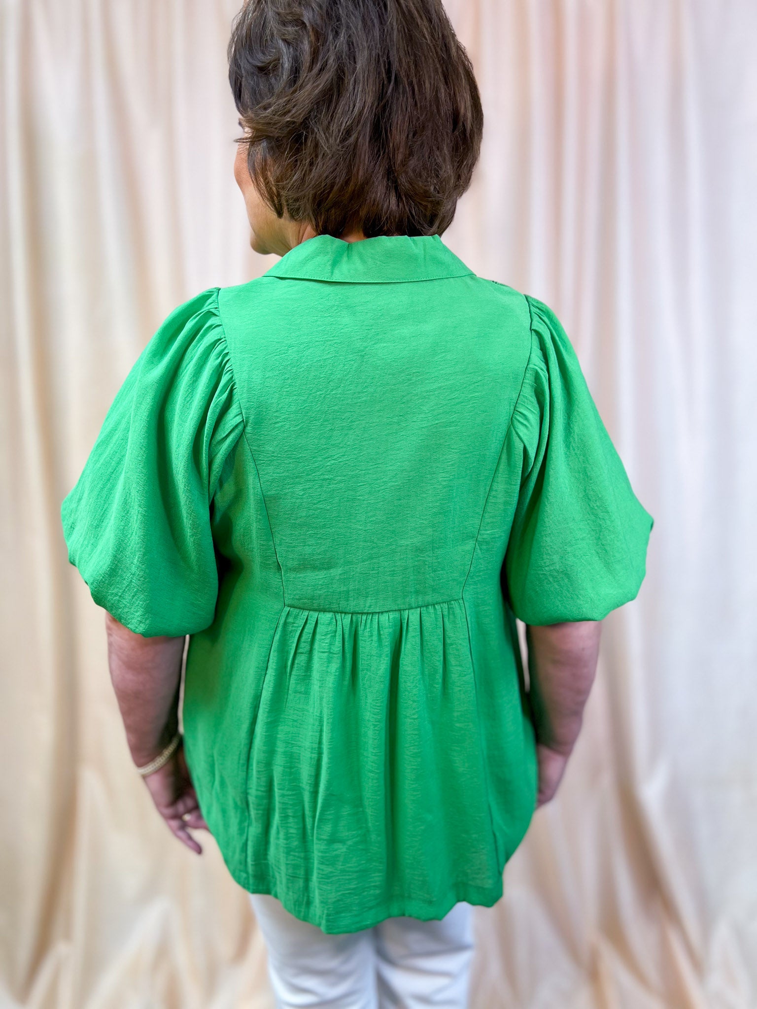 Get ready to be the most chic chick in the room with our Apple of My Eye Curvy Green Smocked Blouse! Everyone loves a good solid top, and this v-neck with a smocked chest, simple collar and balloon sleeves is the ultimate curvy closet must-have. Indulge in sweet simplicity that is sure to make you stand out no matter the occasion!