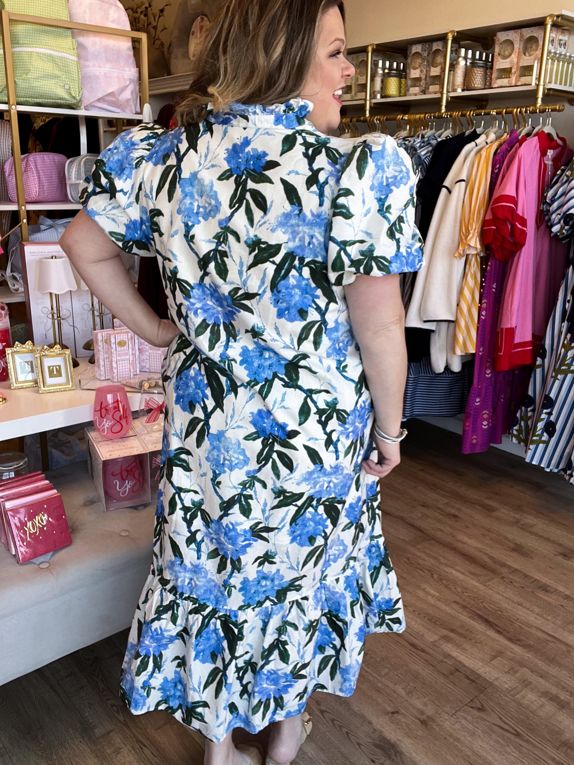Twirl into spring with our Blossom Whispers Curvy Floral Midi Dress—a playful celebration of feminine style. This charming midi features a vibrant floral print with a ruffled neckline and delicate puff sleeves that add just the right amount of whimsy. Ruffled hems and practical side pockets keep things fun and functional. Fully lined and crafted from lightweight woven fabric, it's non-sheer and ready for any occasion. Perfect for garden parties, brunch dates, or whenever you want to feel fabulous! (We spot an Easter dress!)