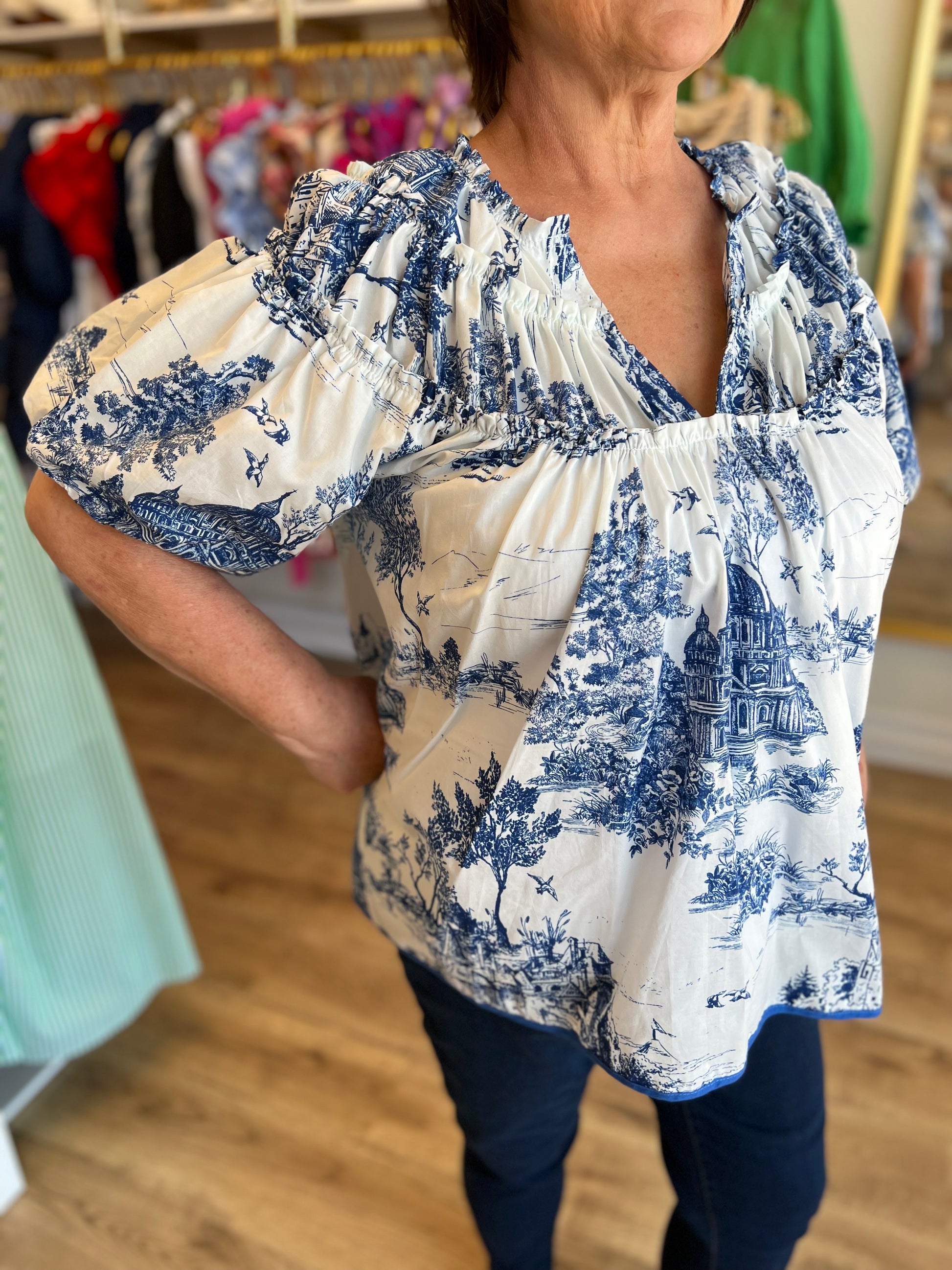"Days of Yore" Blue Toile Top - FINAL SALE