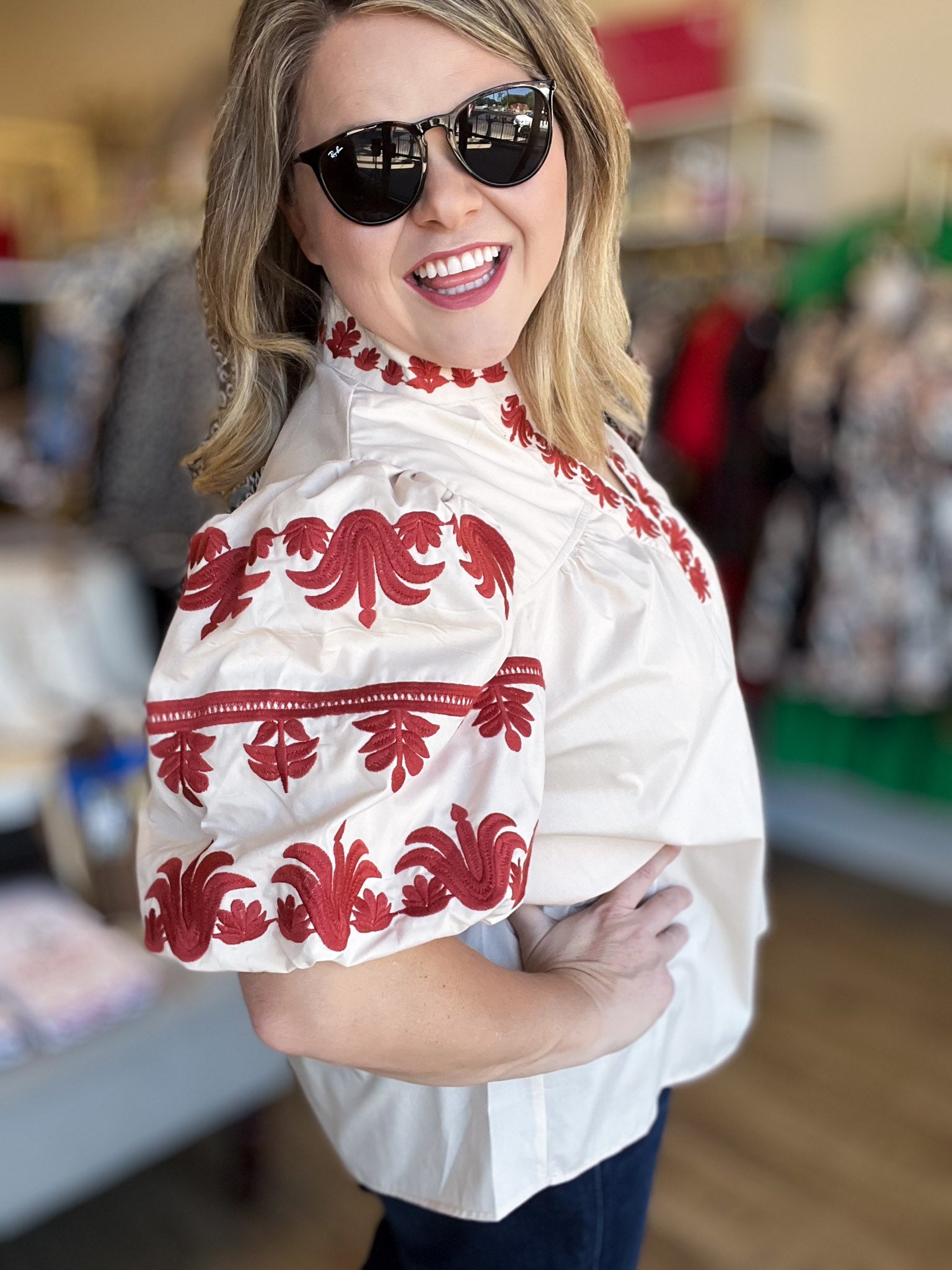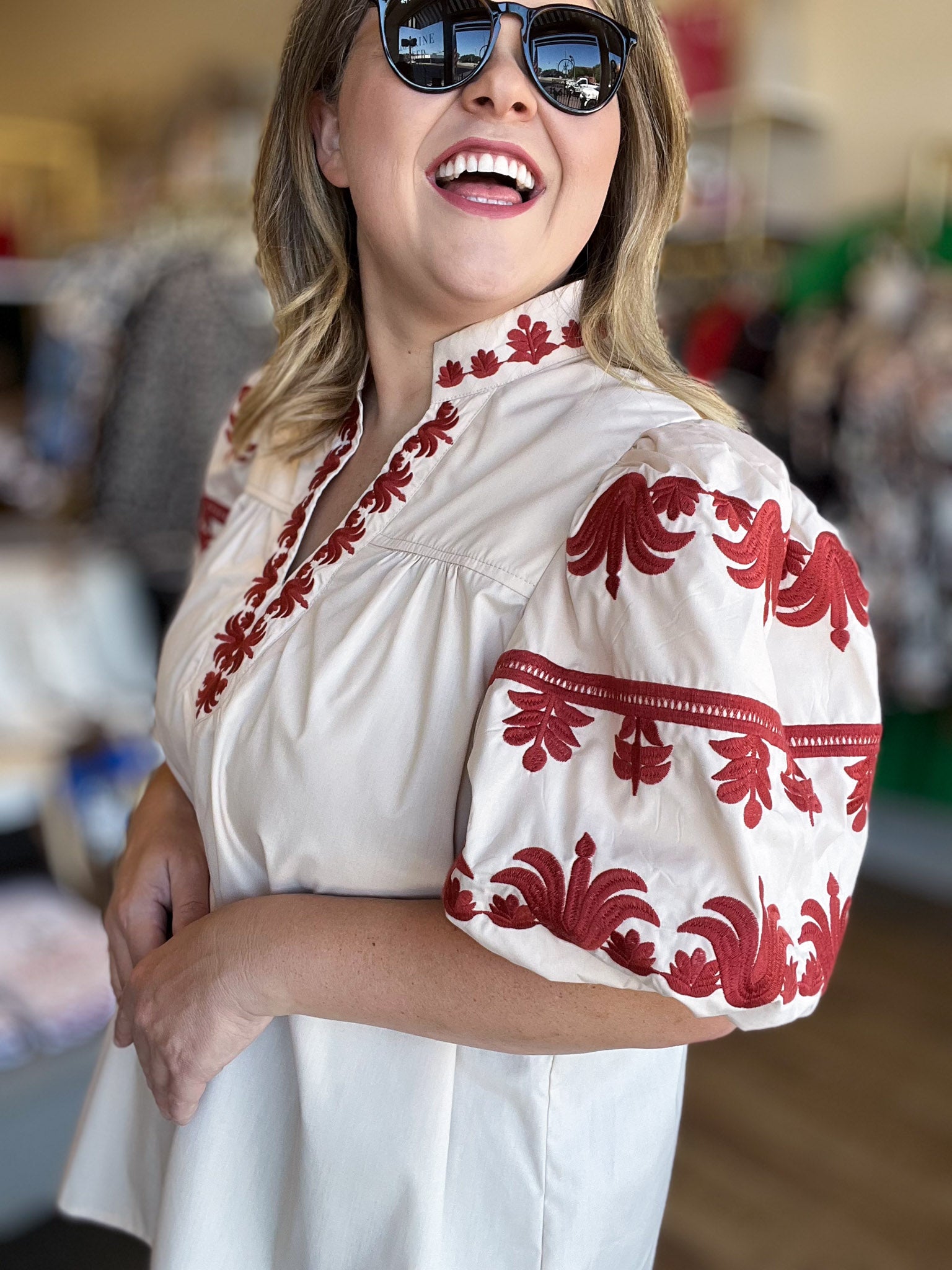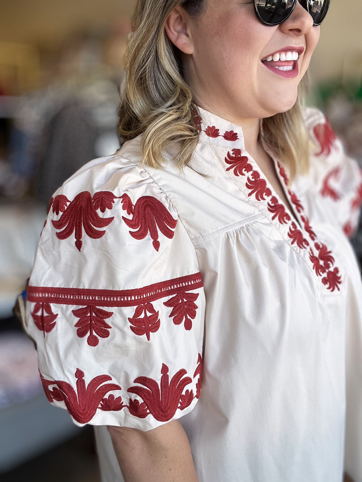 Celebrate your curves with the Eccentric Embroidery Curvy Ecru Top, a playful blend of comfort and charm. This long, roomy top features colorful, detailed embroidery that turns every glance into admiration. The split neck and puff sleeves add a fun, flirty touch while keeping you feeling light and free all day long. Perfect for those who love to combine unique style with ease of wear.