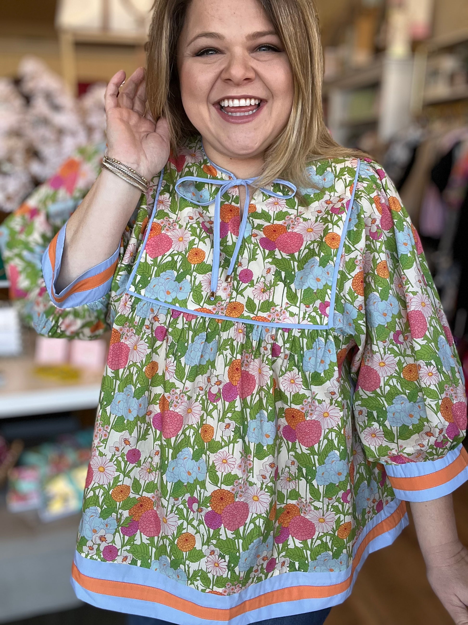 RESTOCKED! “Flower Power” Curvy Marigold Top