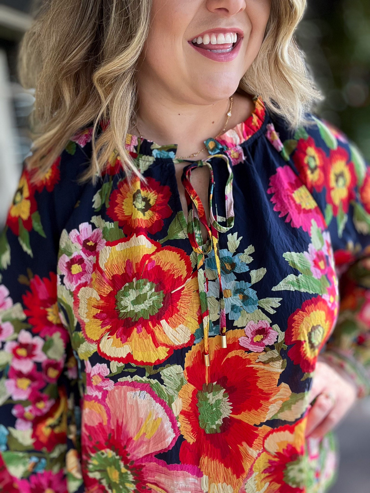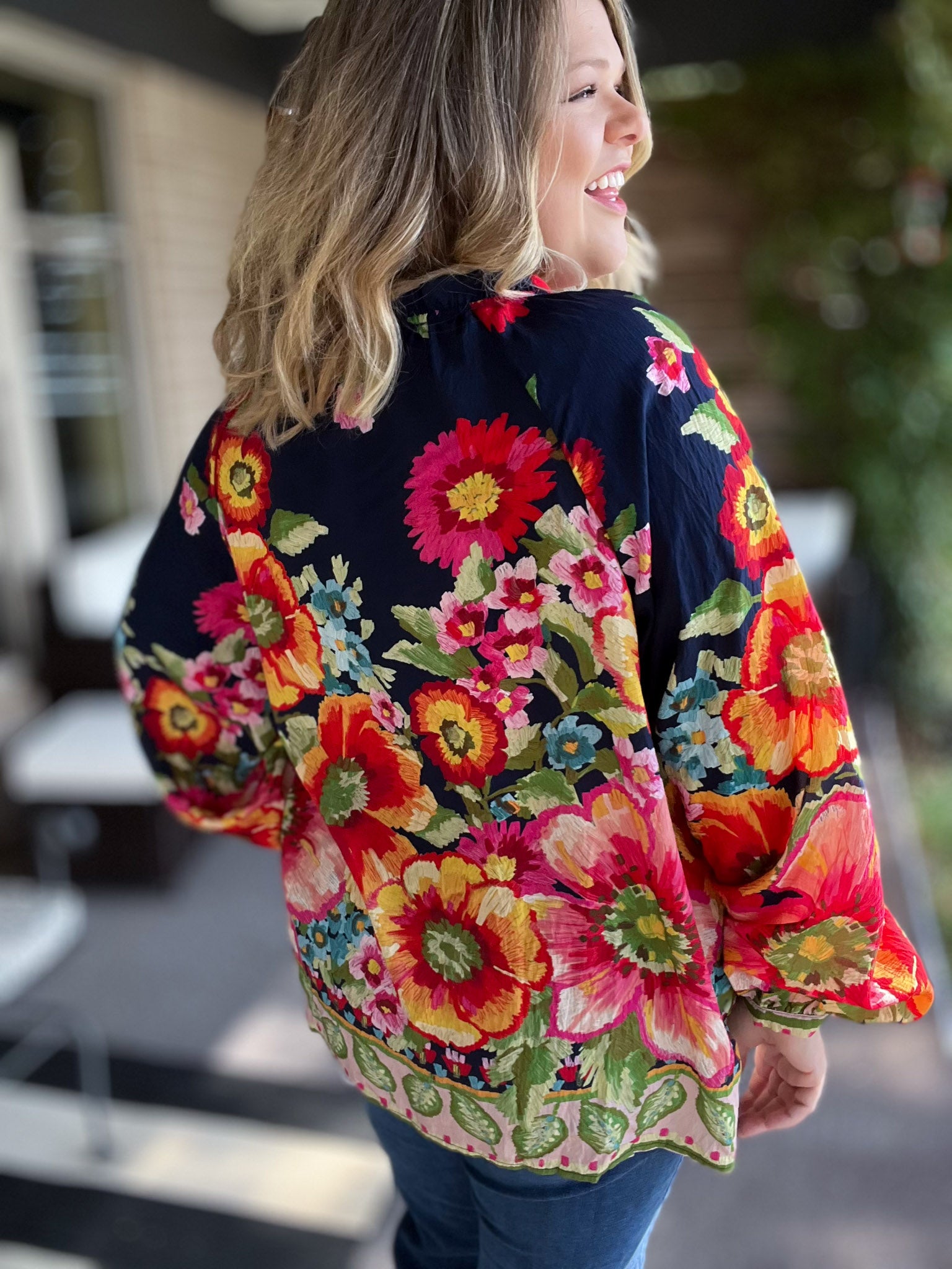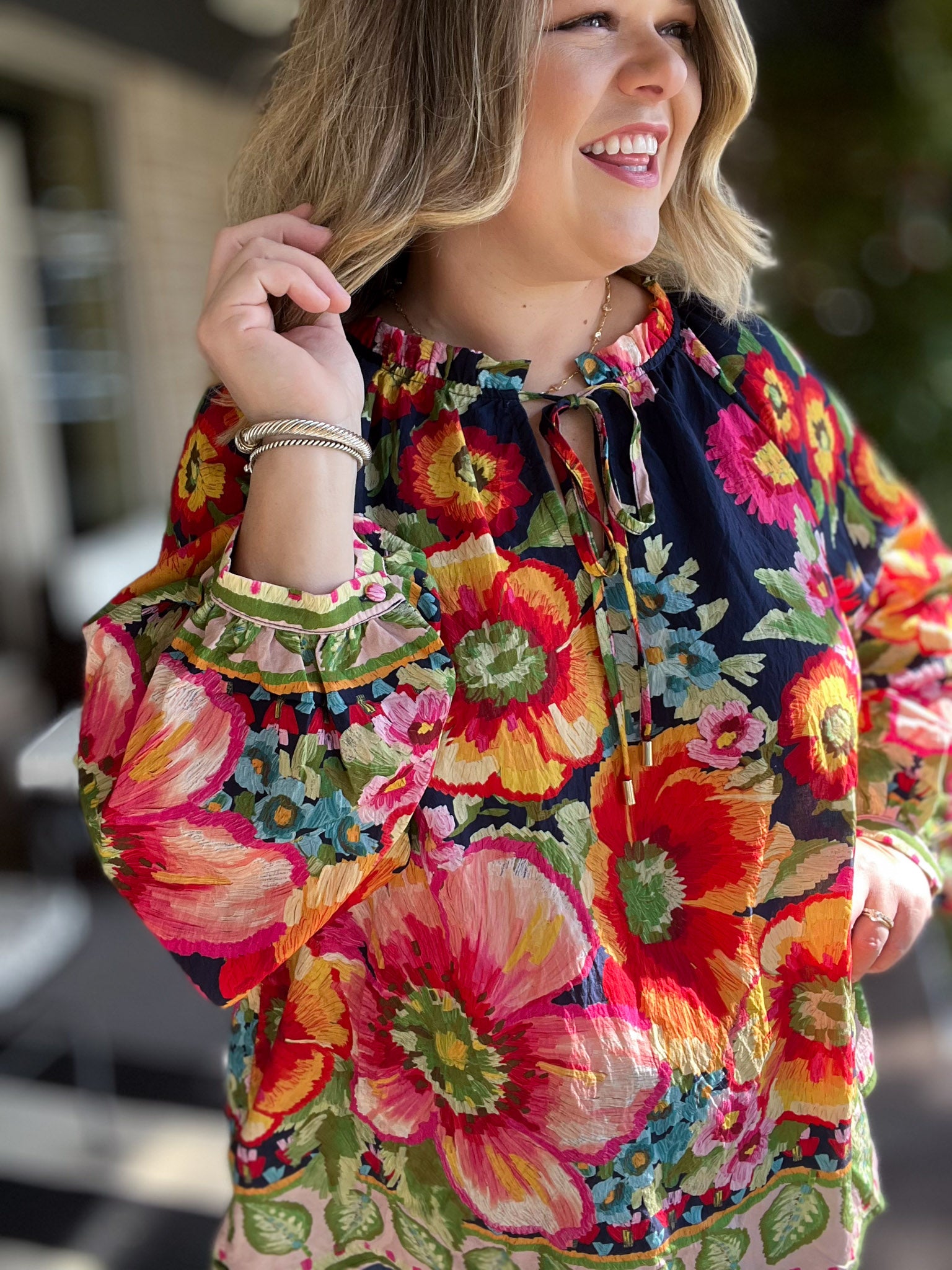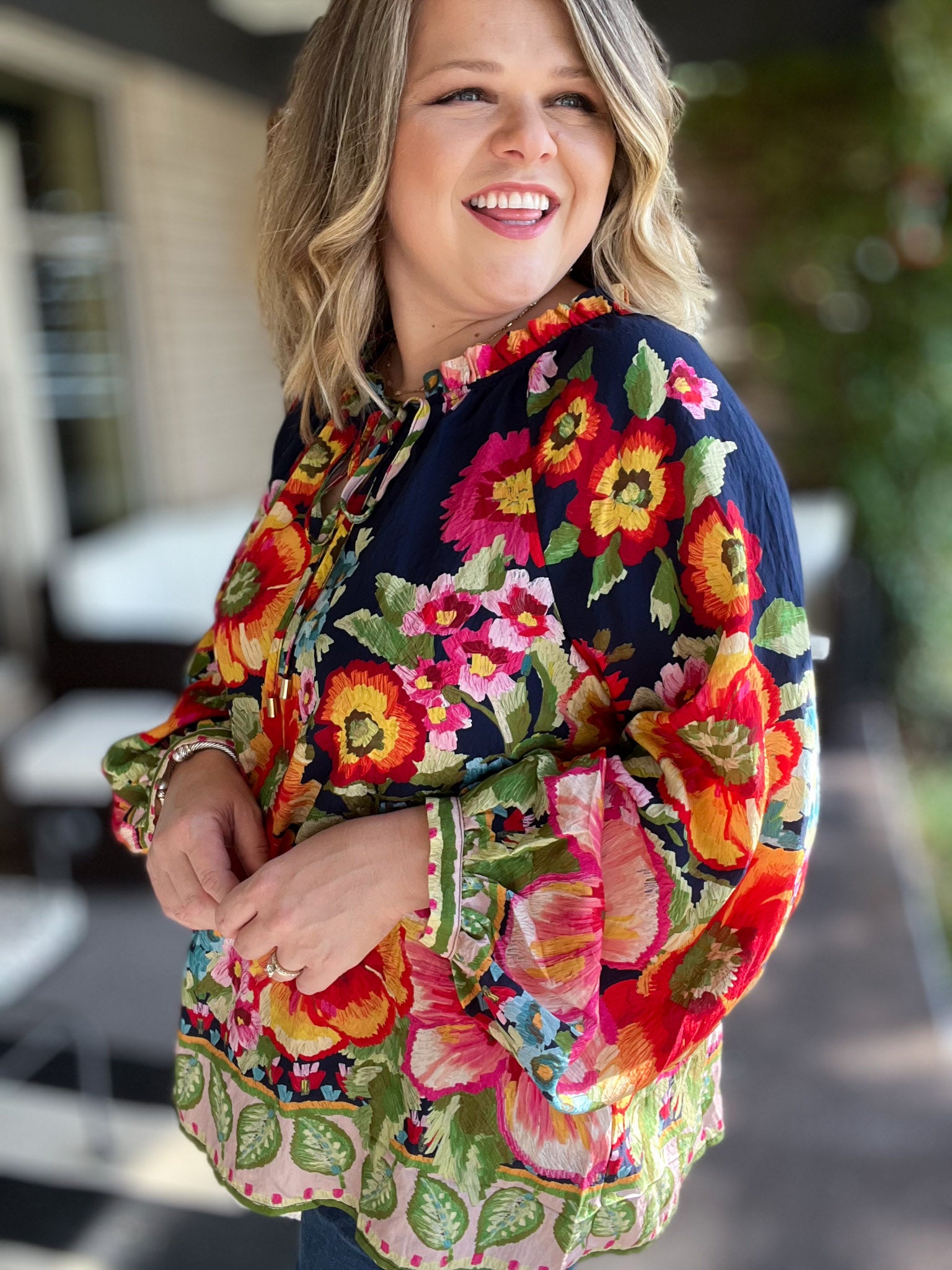 Fall into the season with bold confidence with the In Fall Bloom Plus-Size Floral Top! This v-neck top drapes in a flowy fit that celebrates every curve unapologetically. With vibrant, bright colors, it commands attention in any seasonal lineup. Lightweight fabric ensures you stay comfortable while a keyhole neck and raglan sleeves keep you stylish all day long. Whether you’re conquering the pumpkin patch or owning Thanksgiving lunch, this top’s fearless style keeps you looking fierce and fabulous.