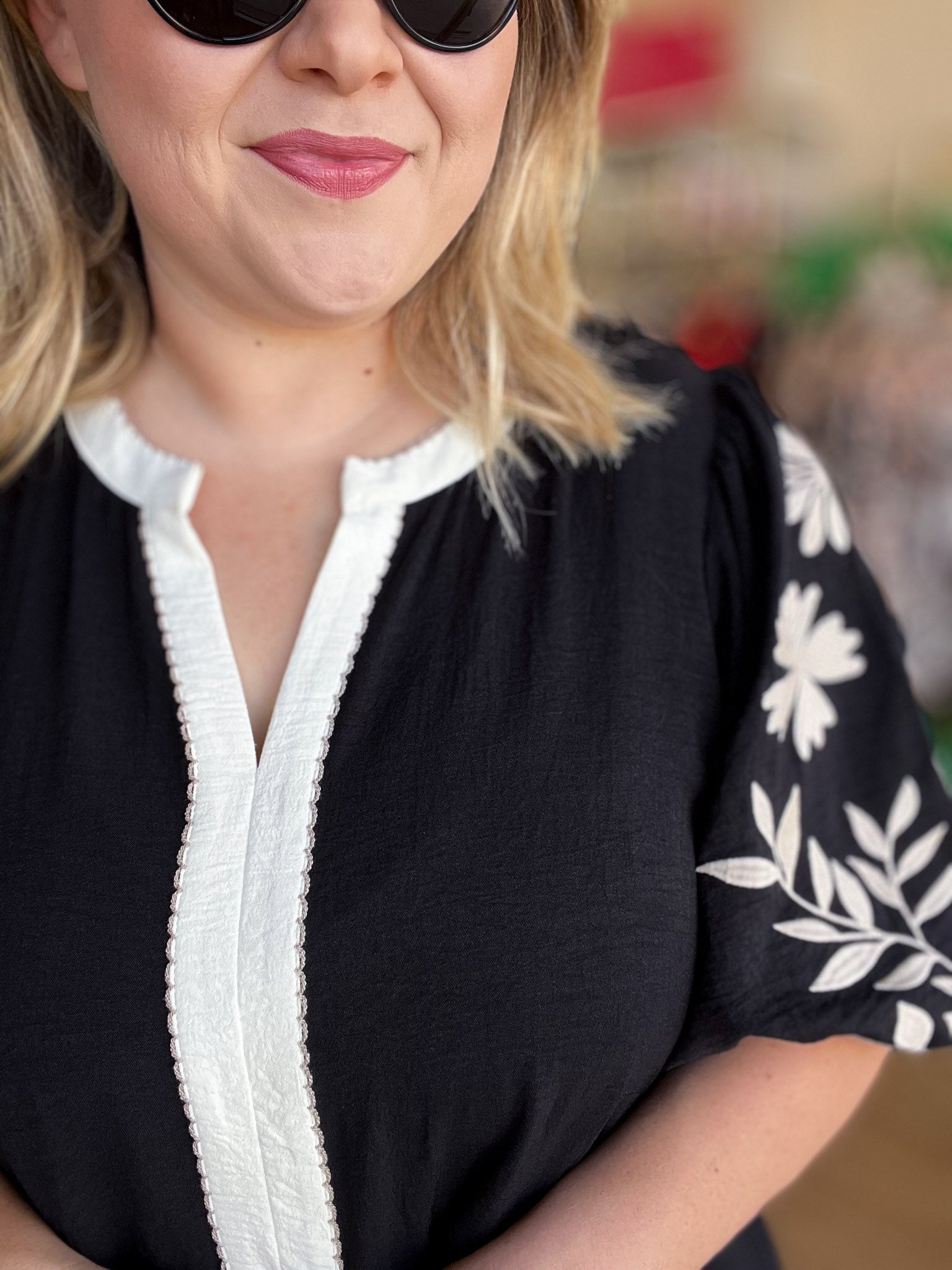 This daring Dream Big Plus-Size Embroidered Peplum Blouse features intricate floral embroidery on the sleeves and a striking contrast stripe down the front for bold style. Its peplum design accentuates your curves, while the split neck adds a touch of allure. Made from lightweight, wrinkle-friendly material, it keeps you looking posh and polished all day long.