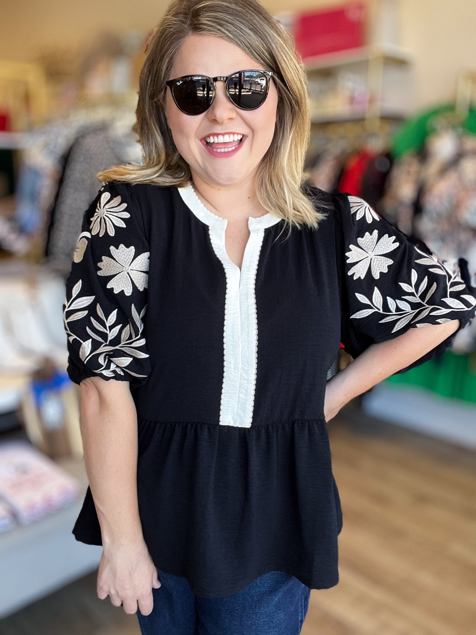 Dream Big Plus-Size Embroidered Peplum Blouse