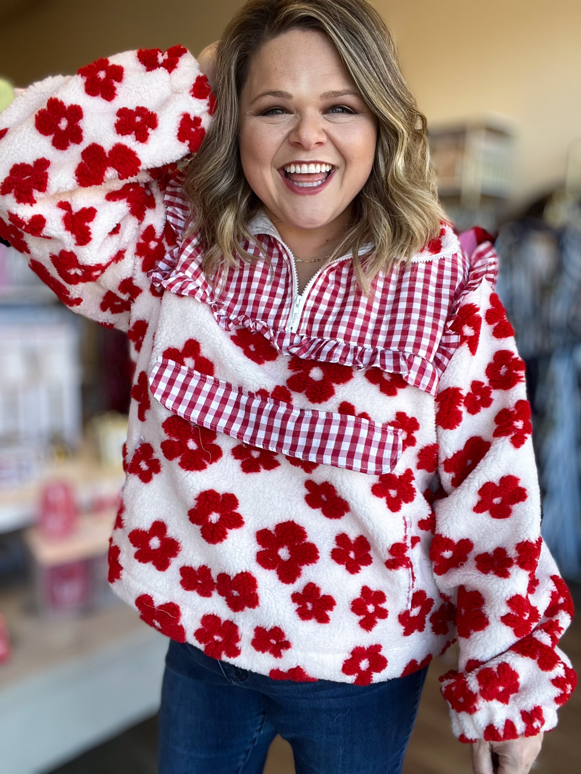 RESTOCKED! Life's a Picnic Plus-Size Gingham Floral Half Zip