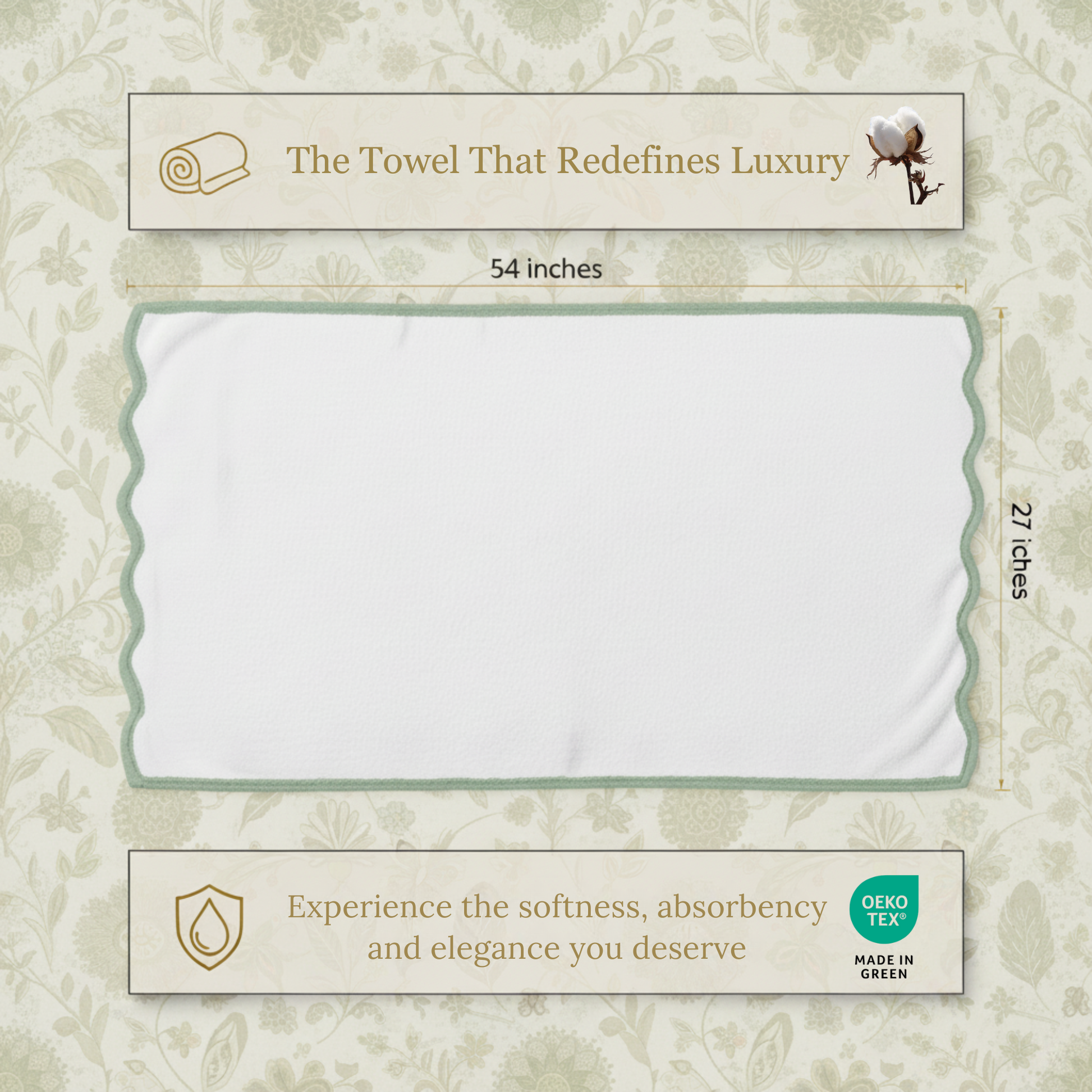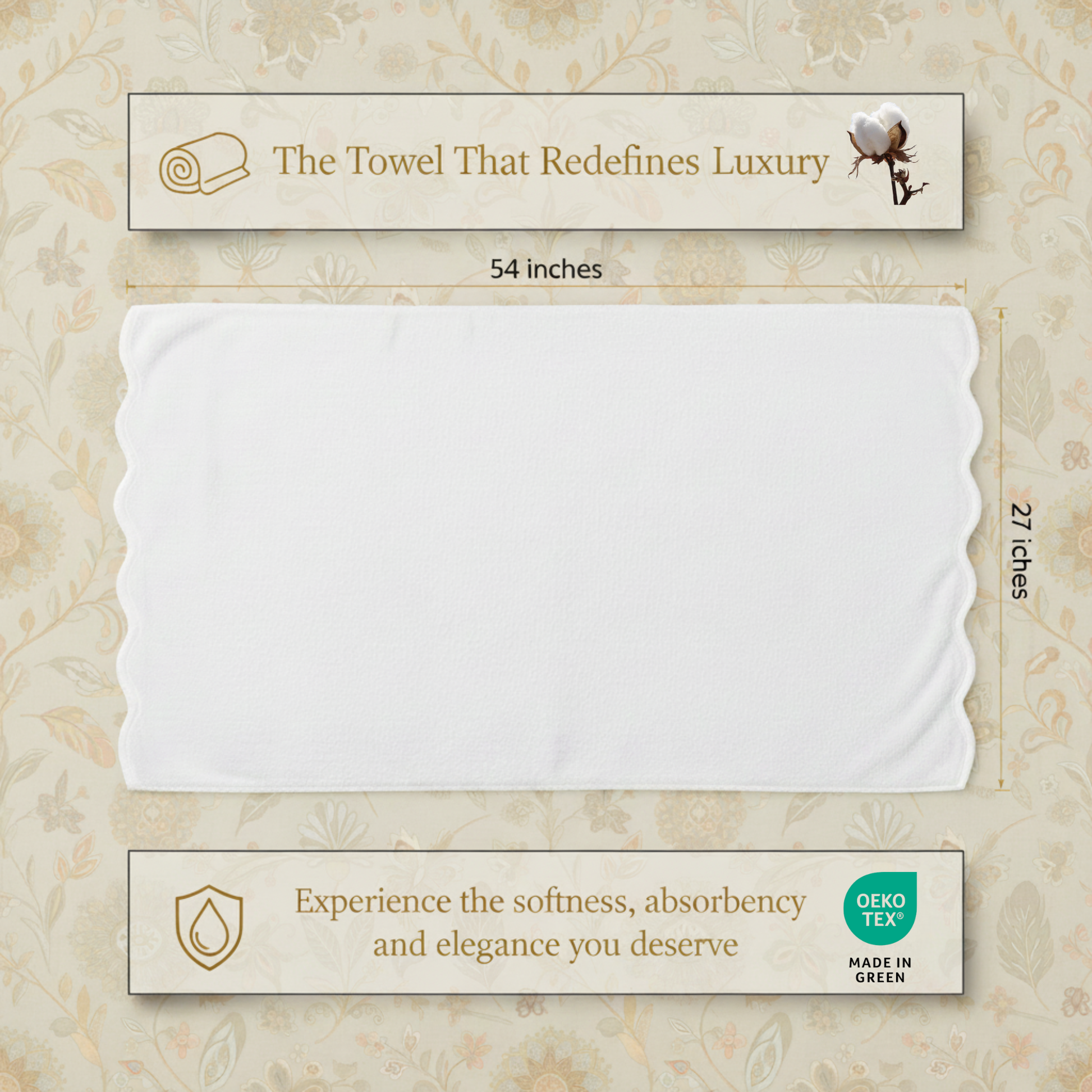 Luxury Cotton Hand Towels with Scallop Piping: Pink Piping / Hand Towel (4 Piece Set)