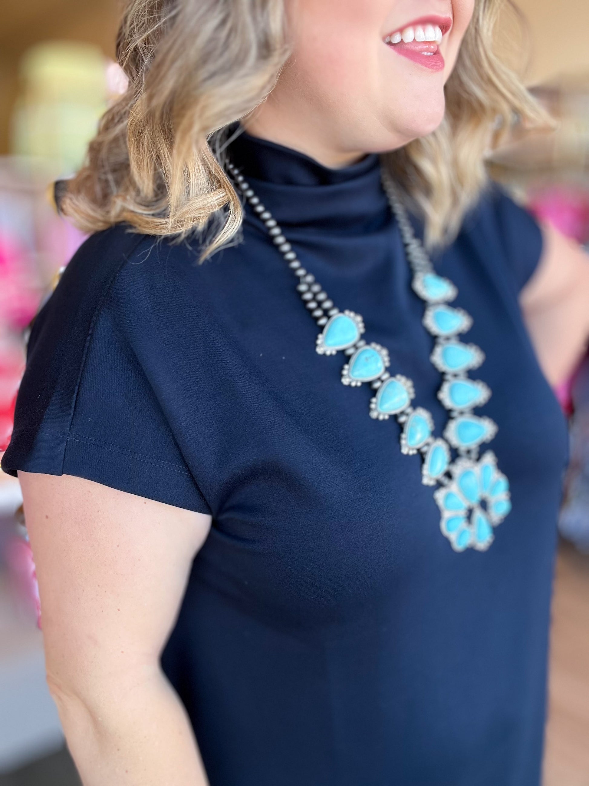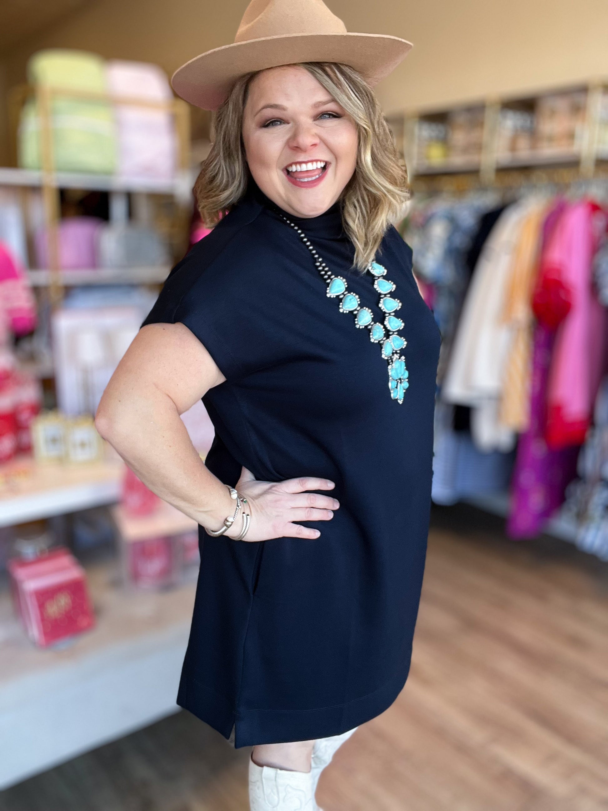 Stay stylishly simple with our Midnight Muse Curvy Navy Jersey Dress! Made of a solid jersey knit, this adorable dress boasts side pockets and a lightweight, non-sheer design. Perfect for any occasion, this versatile dress will keep you looking effortlessly chic.