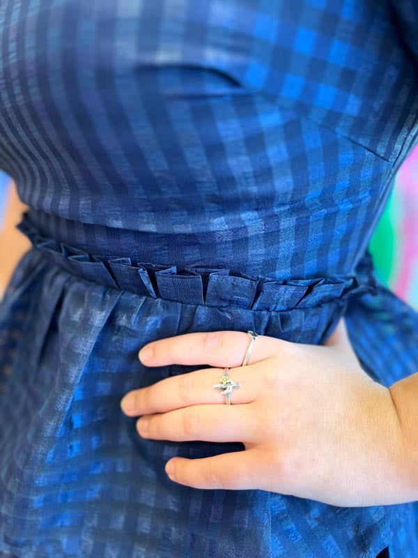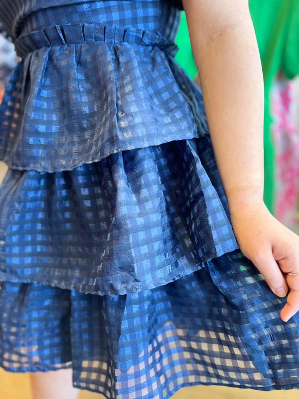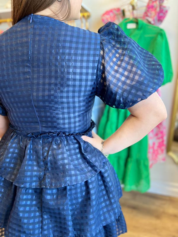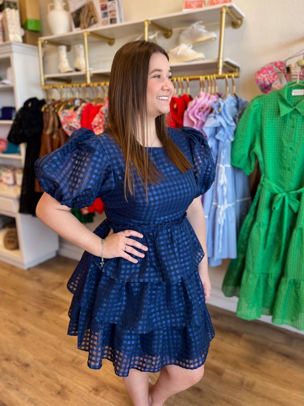 "Bubbly in Blue" Navy Organza Puff Sleeve Tiered Dress - FINAL SALE