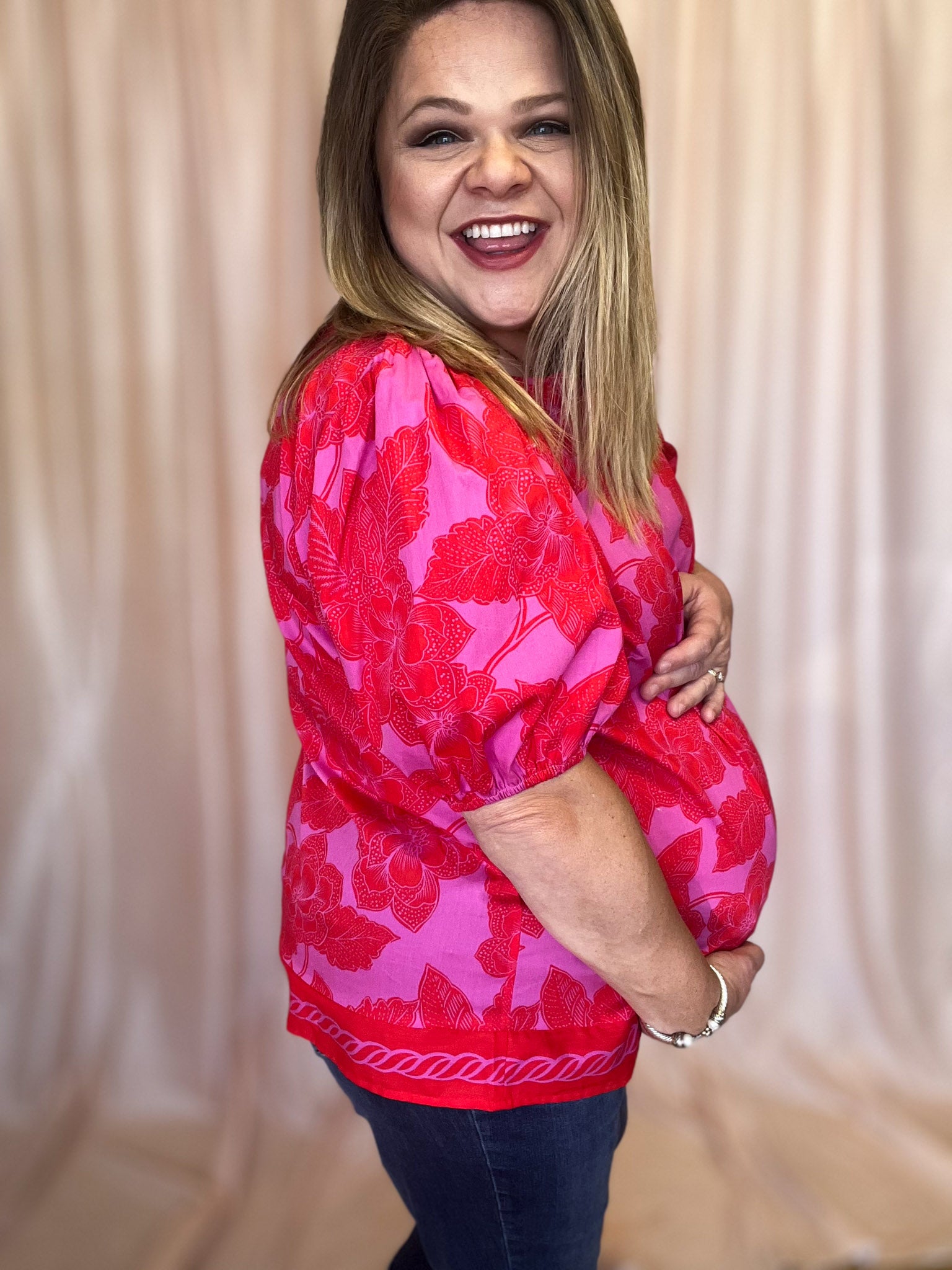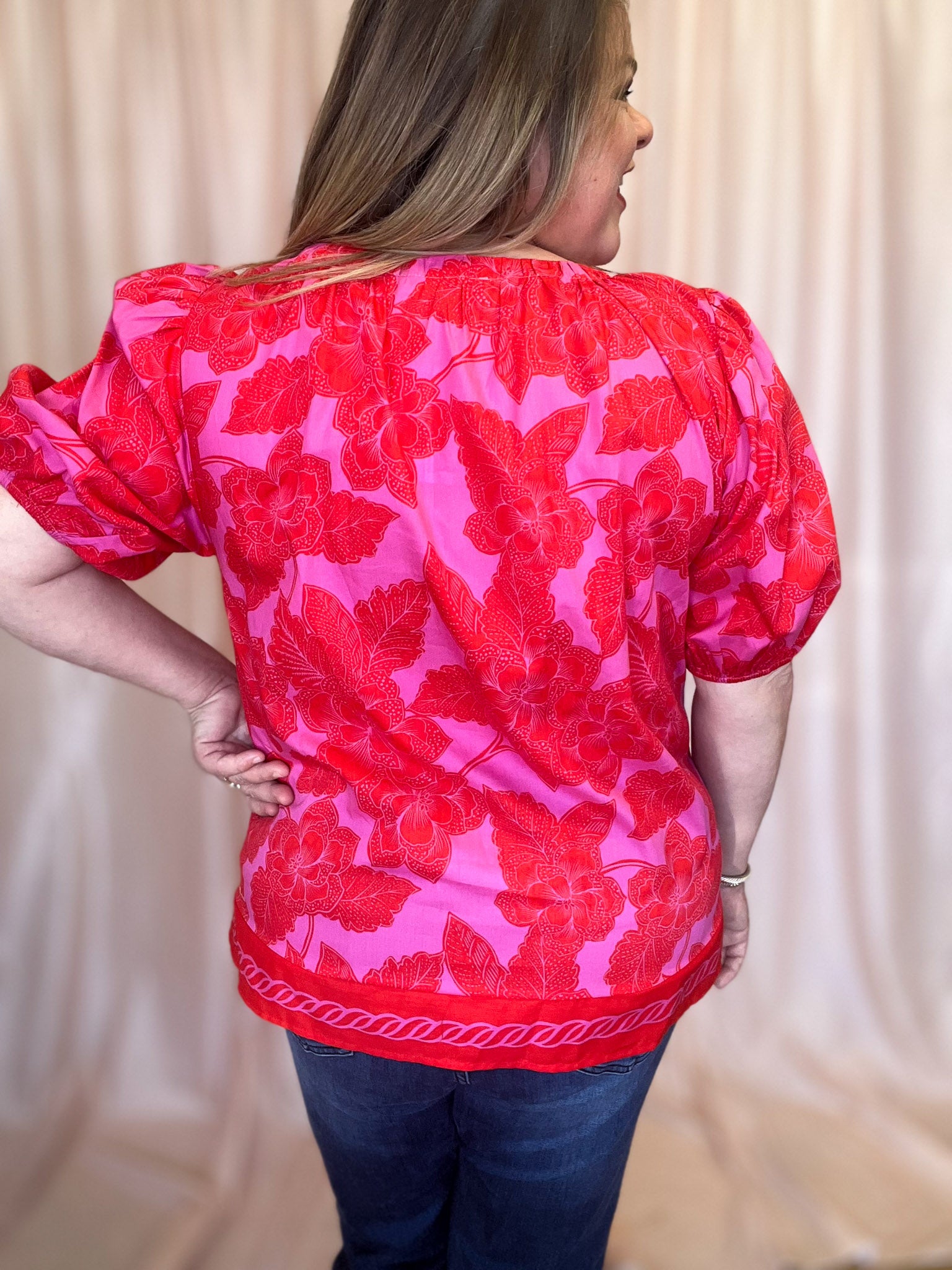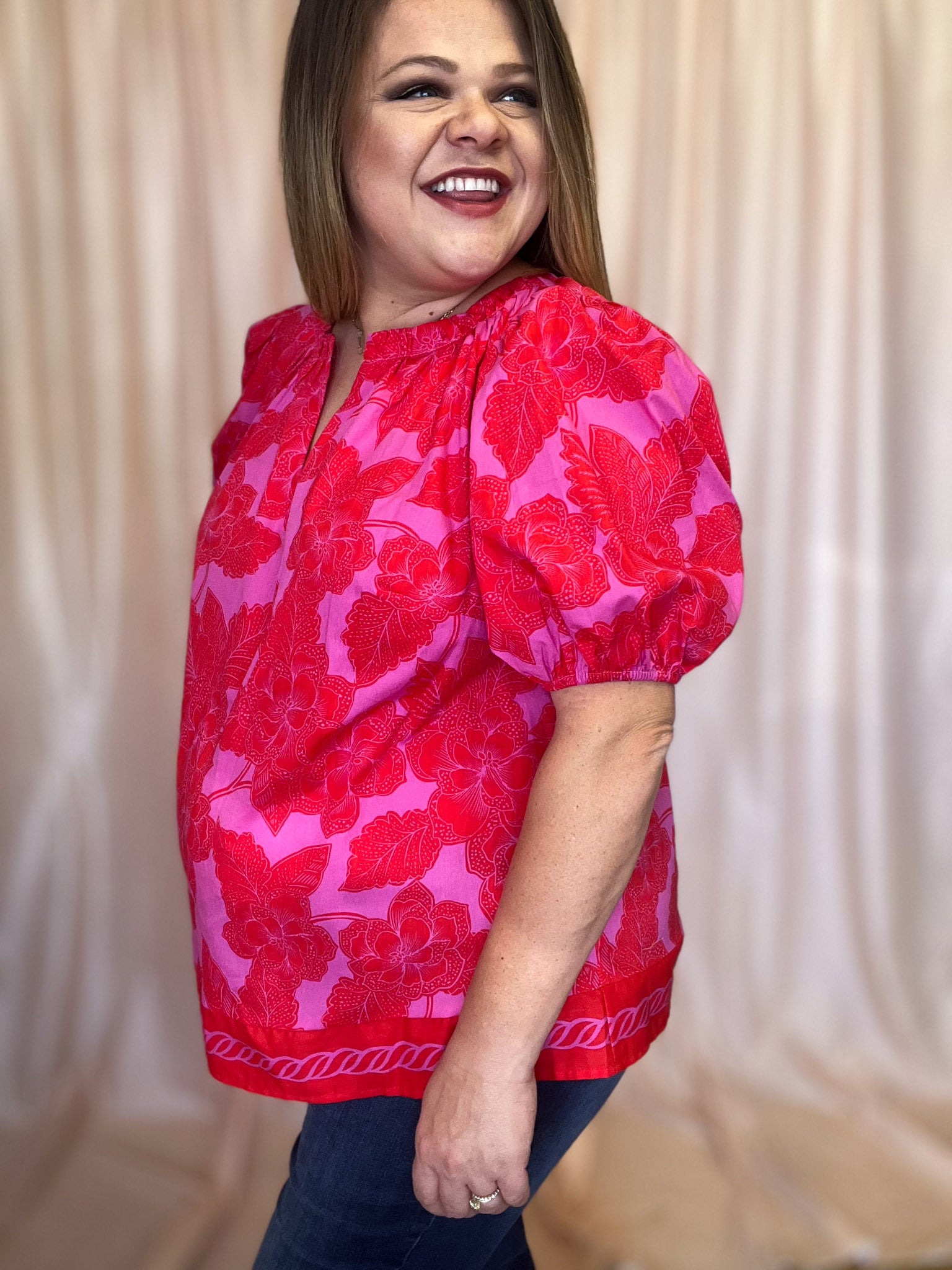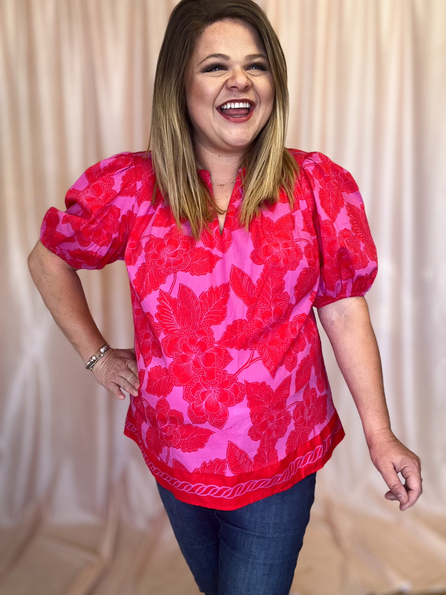 Unleash your inner vibrant fashionista with our Ranchy Floral Plus-Size Pink & Red Top! With puff sleeves and a flattering v-neck, this top is an all-around perfect blouse for pink and red lovers for any day you want to feel bold and beautiful. Show off your fun-loving style with this floral piece that is sure to turn heads!