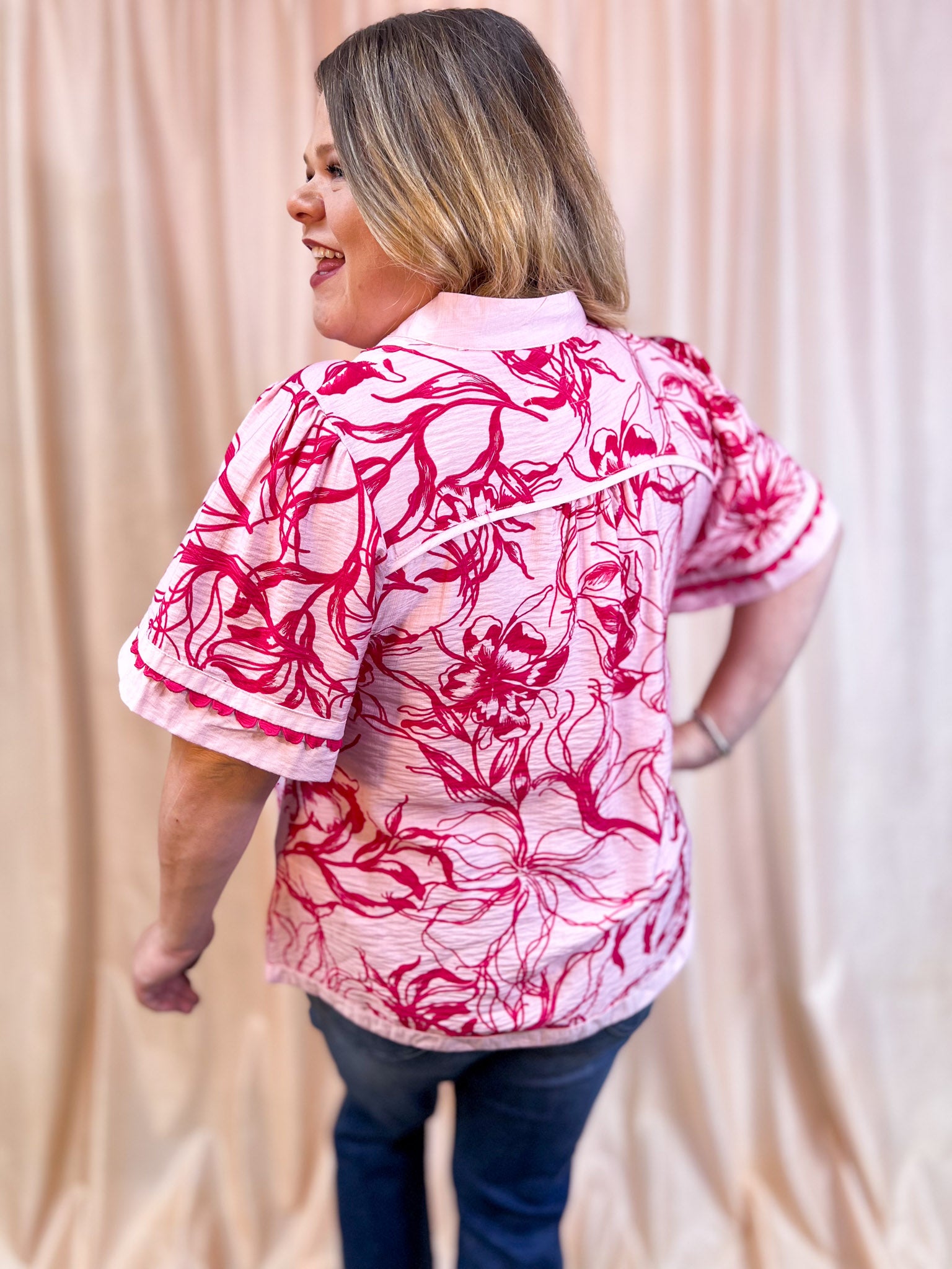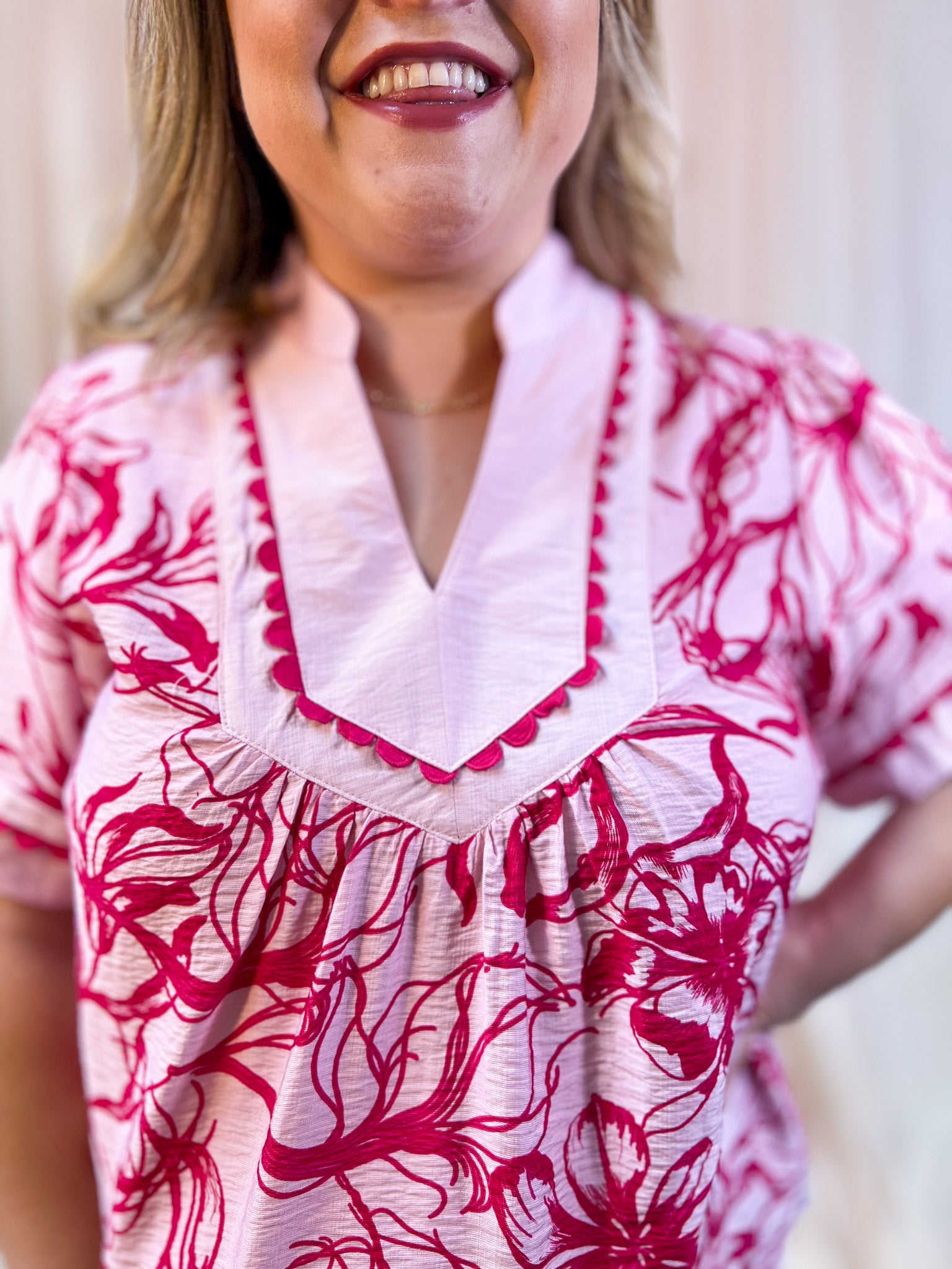 Tickled Pink Curvy Floral Scalloped Trim Blouse