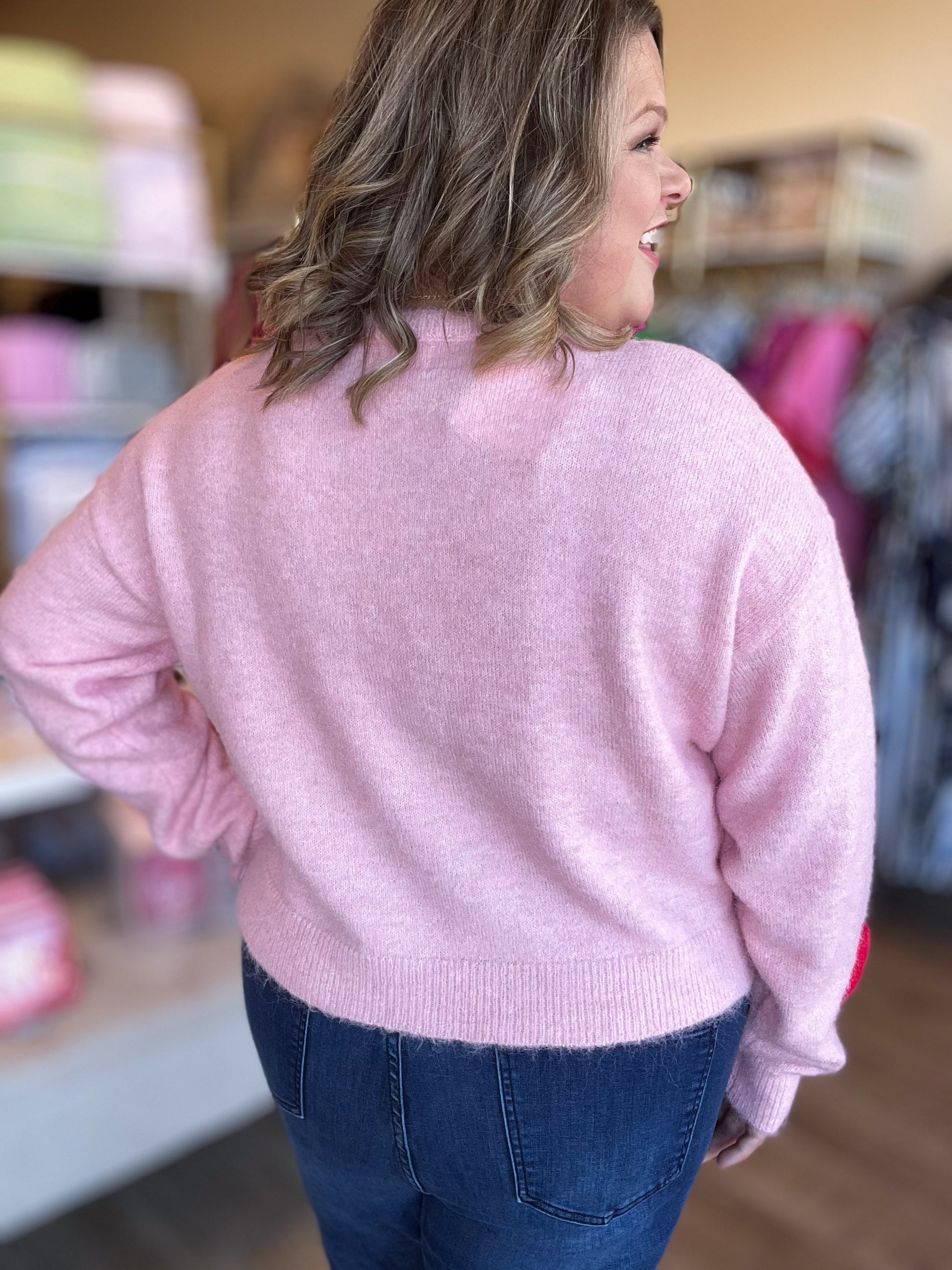 X's and O's Plus-Size Fuzzy Heart Cropped Cardigan